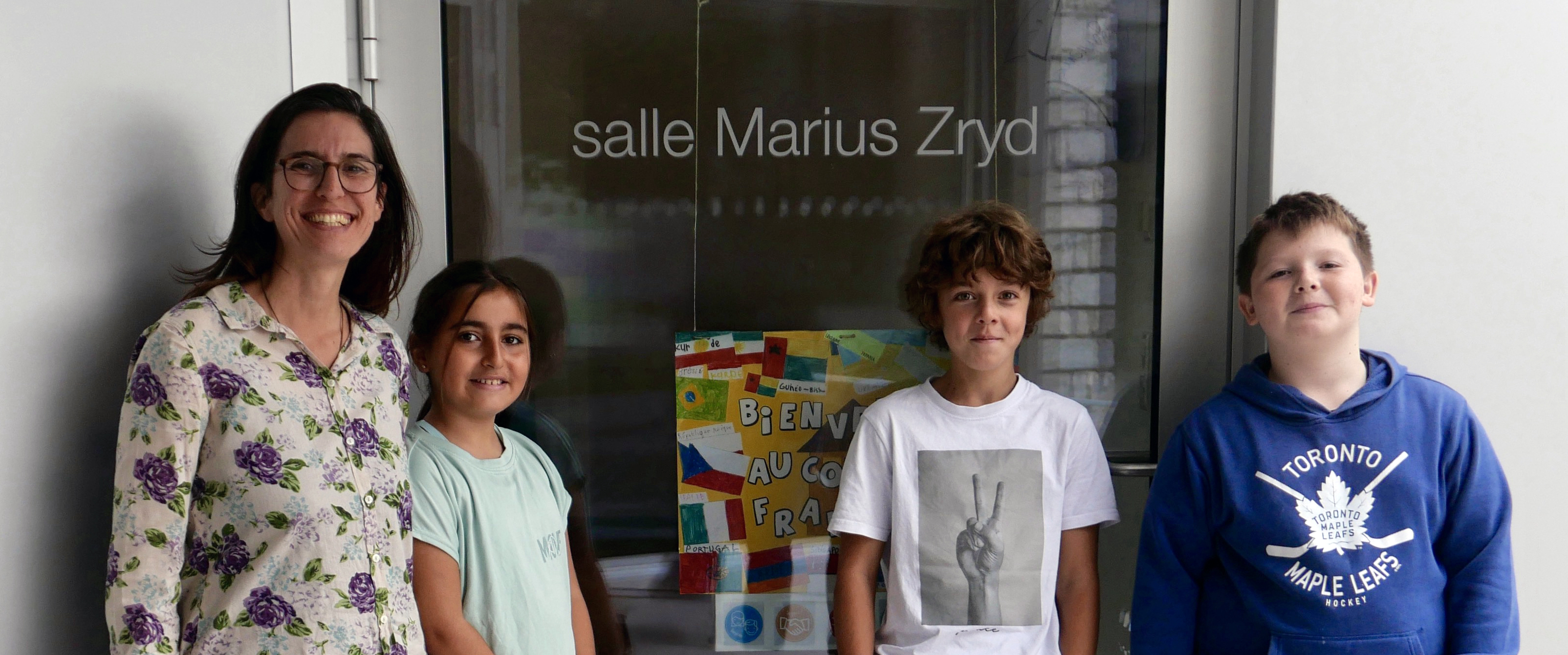 Mélanie Pitteloud, Lorin, Antonio et Nikita lors de l'interview devant leur salle de cours